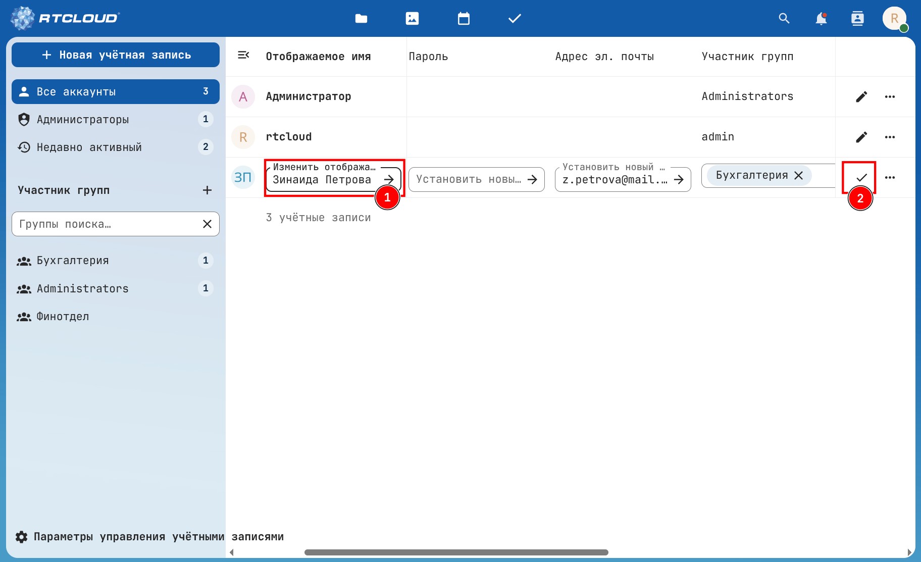 - Введите новое отображаемое имя пользователя. Система сохранит изменение автоматически после ввода.
