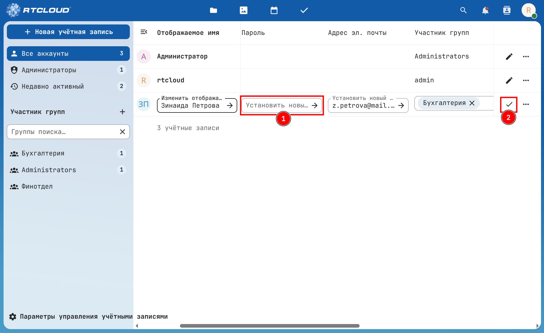 1. Наведите курсор на поле «Пароль» соответствующего пользователя.